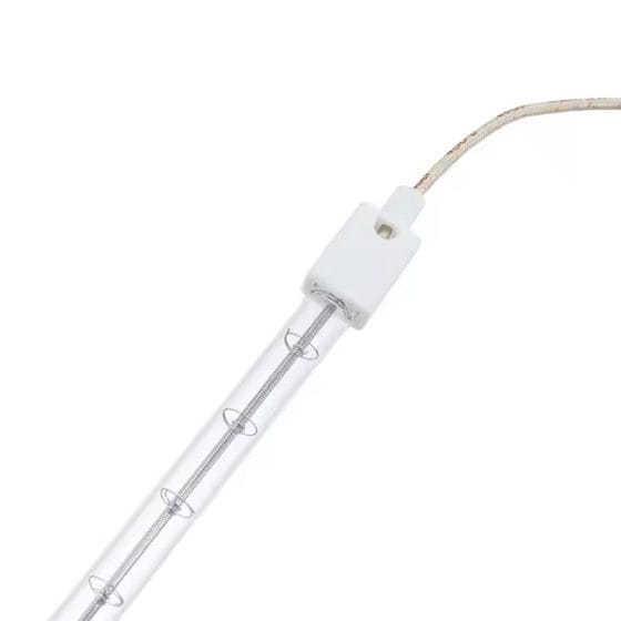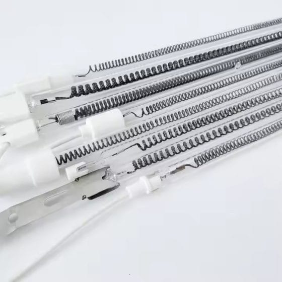 Manufacturers make infrared heating lamp from milky quartz glass. They use resistance heating materials as the heating element. Milky quartz glass absorbs almost all visible and near-infrared light from the heating wire. It then converts this into far-infrared radiation.